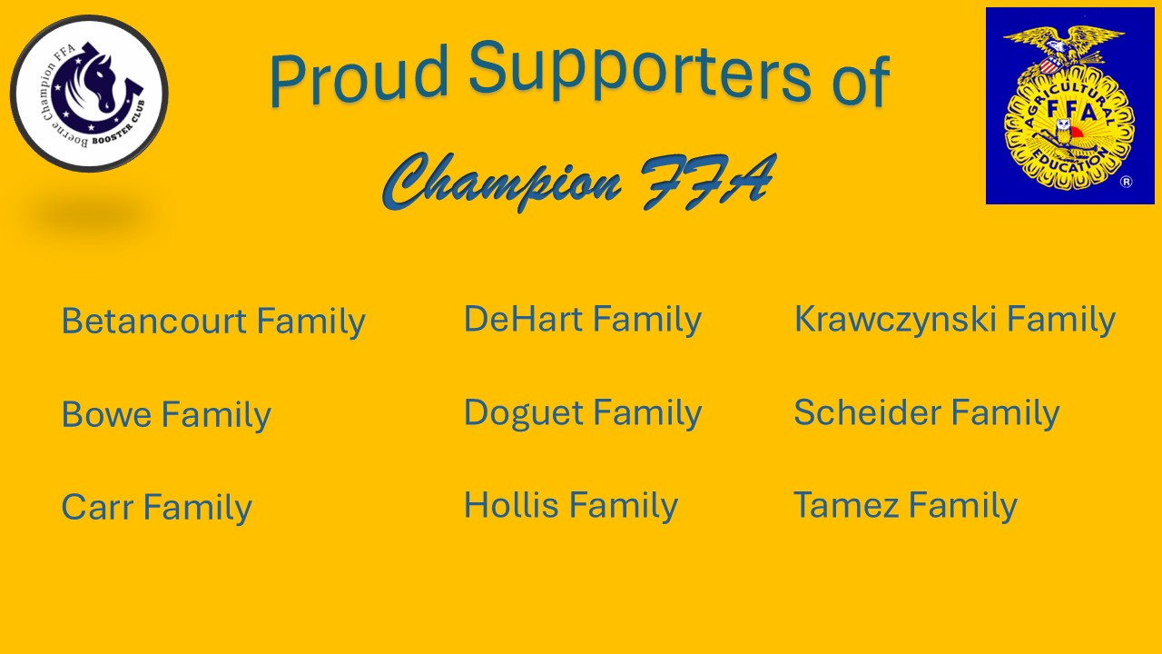The Boerne Champion High School FFA Booster Club (Booster Club) shall support the Boerne Champion FFA Chapter and its advisors in their educational endeavors. Booster Club shall promote the education of the FFA students in the Agricultural Sciences, encouraging growth and development of knowledge in the field during and beyond high school.